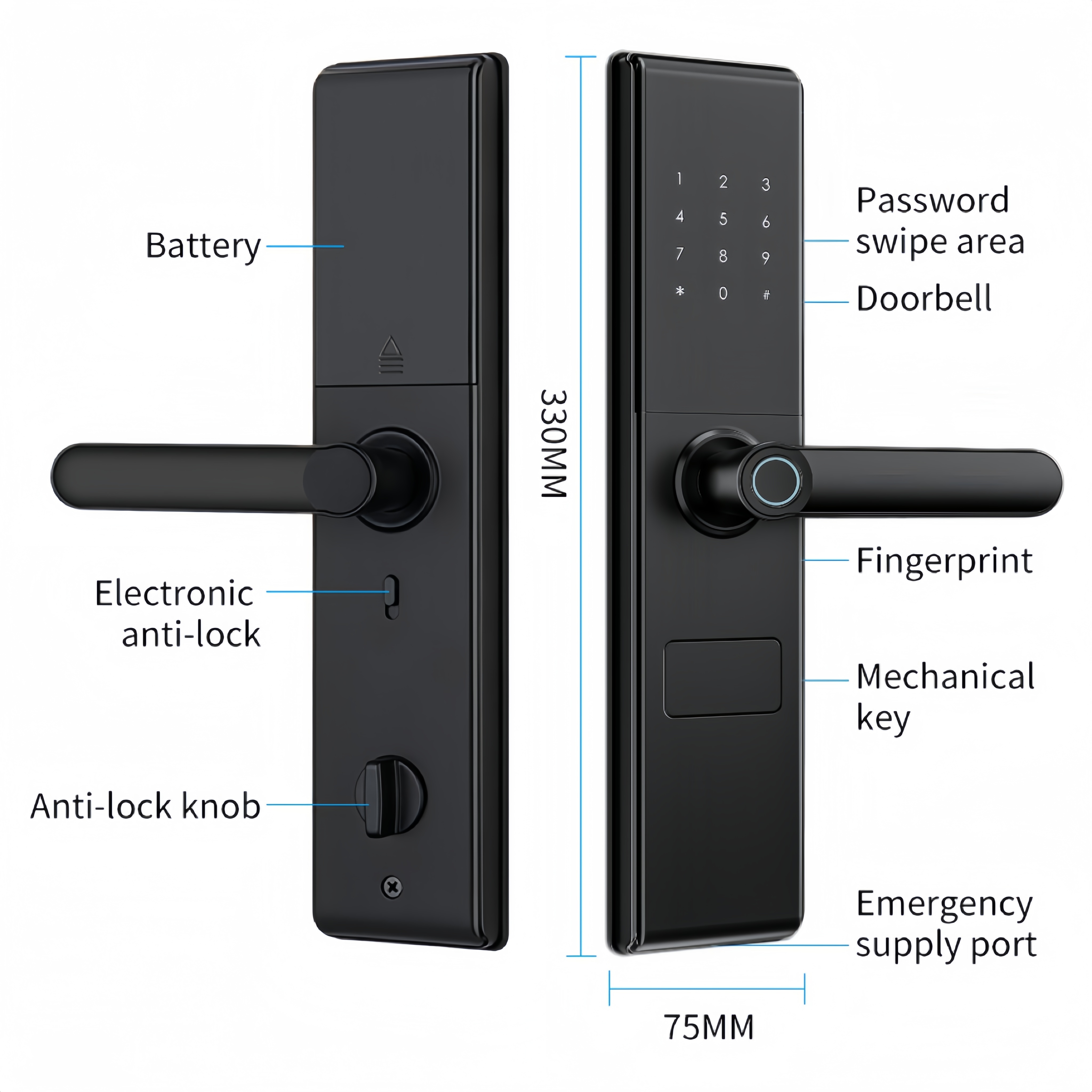 ♦ Secure & Stable Structure — Anti-peep password design, encrypted data, and solid alloy body for reliable home protection.