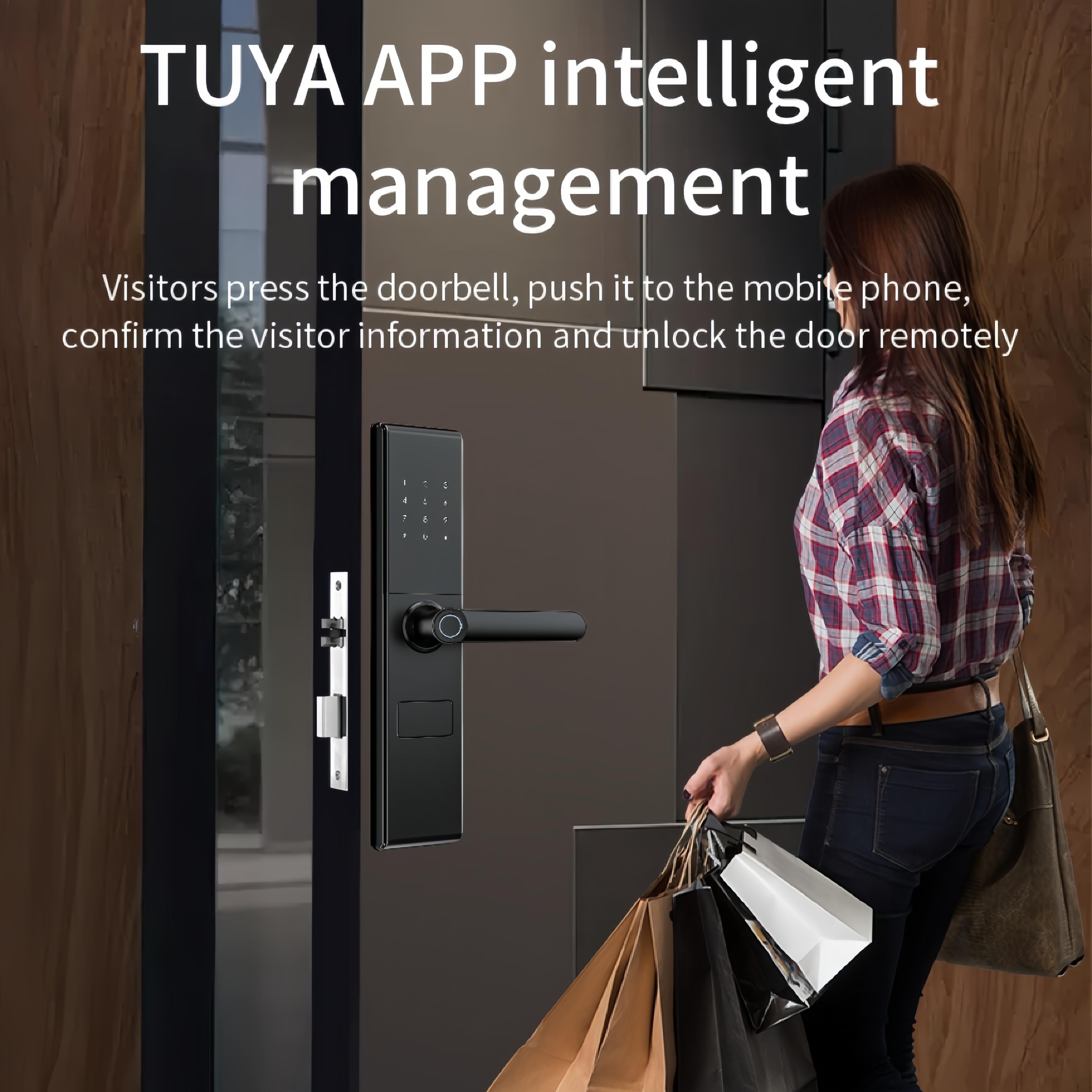 ♦ Tuya Smart App Control — Real-time unlocking records, remote authorization, and one-click temporary passcodes.