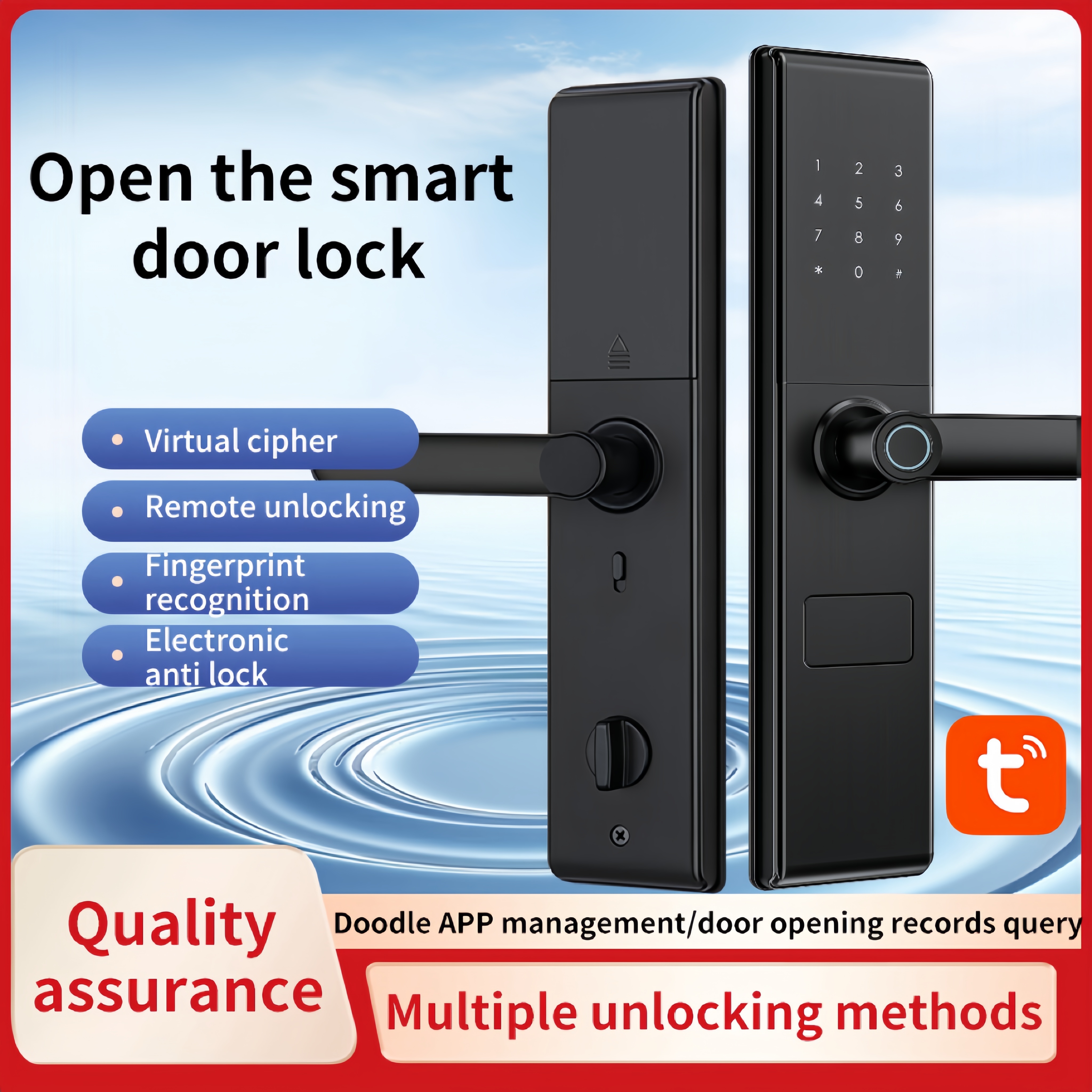 ♦ Multiple Unlock Options — Supports fingerprint, password, key card, mechanical key, and Tuya App remote control.