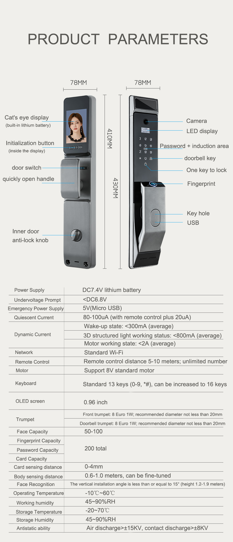 | Smart App: | Tuya App | Door Types: | Wood, Steel, Stainless Steel, Aluminum |